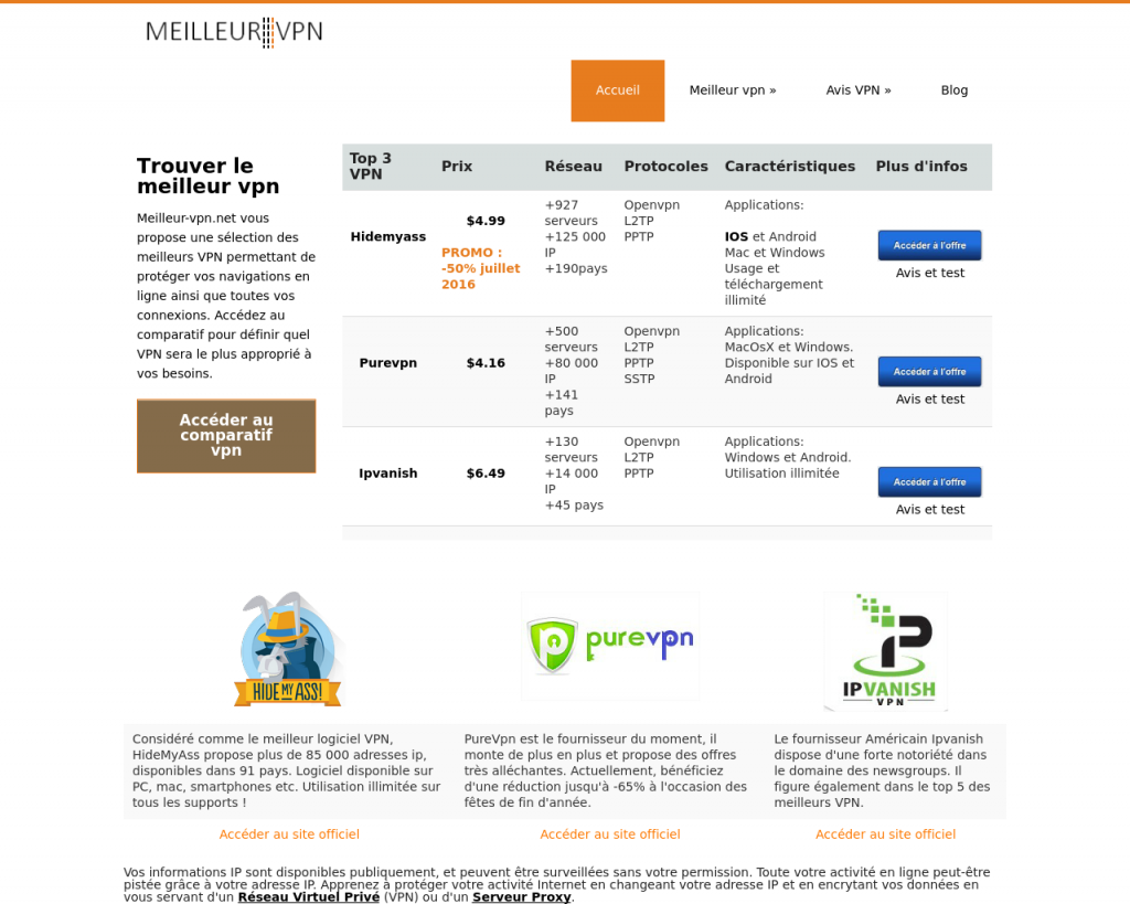 HMA, qu'il est possible de trouver sur meilleur-vpn.net met aussi à votre disposition 120 000 adresses IP. Elles sont utilisées sur des serveurs dispatchés dans près de 190 pays. Il s'agit donc de l'un des logiciels les plus performants, mais il présente un autre atout depuis la nouvelle mise à jour. Trois formules sont proposées et "L'instant Mode" offre la chance de sécuriser le Web grâce à un seul bouton. En parallèle, vous pourrez jouir du "Location Mode" qui vous donne les moyens de contourner la restriction géographique.